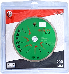 Алмазный отрезной круг Diam Master Line 1A1R Корона Granite 200 мм (Диам Мастер Лайн 1А1Р Корона Гранит 200 мм) – универсальный недорогой алмазный диск высокого качества со сплошной режущей кромкой для резки гранитной, мраморной и керамической плитки болгарками (ушм), штроборезами и плиткорезами электрическими с подачей воды.