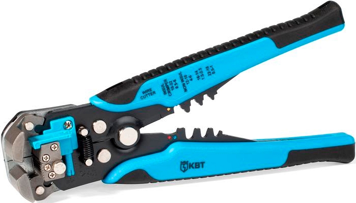 Автоматический многофункциональный стриппер КВТ WS-04A (KVT ВС-04А) с винтом микронастройки предназначен для снятия изоляции с проводов сечением 0,05 – 10 мм², резки проводов сечением до 10 мм², снятия оболочки с плоских проводов ВВГ-П и ПУНП, опрессовки изолированных с красной, синей и желтой манжетами наконечников, неизолированных наконечников, автоклемм под двойной обжим 0,5 – 6 мм².