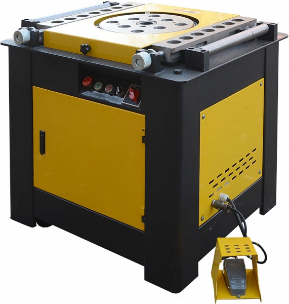 Автоматический станок для гибки арматуры с концевиком TSS GW 52R (ТСС ГВ 52Р) – электрический арматурогибочный станок с доводчиком для холодной гибки арматурной стали, сортового проката на строительных площадках, под навесом, на производствах железобетонных и металлических конструкций (дорожные плиты, блоки, панели перекрытий и т.д.), а также в производственных цехах; востребован непосредственно в строительстве – например, при создании фундаментов зданий.