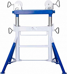 – По ширине расположения направлящих с роликами для соответствующего диаметра труб: выравнивание по обе стороны - Быстрозажимные стопорные шайбы для быстрого позиционирования по высоте