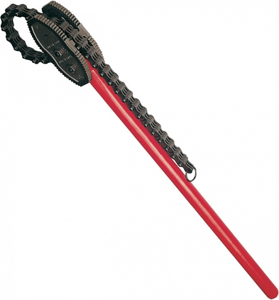 - Надежная и прочная цепь из закаленной стали обеспечивает надежный и быстрый захват трубы