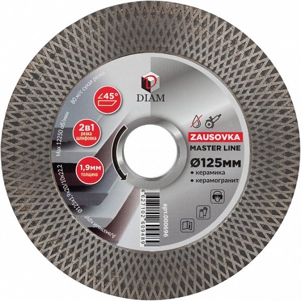 Специальный алмазный круг Diam Master Line Turbo Zausovka 125 мм (Диам Мастер Лайн Турбо Заусовка 125 мм) – специальный алмазный отрезной диск для сухой резки и выполнения заусовки (шлифовки) на керамической плитке и керамограните.