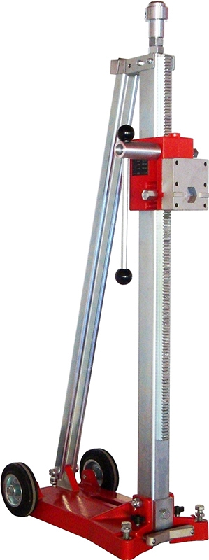 - Стальная наклонная колонна крепится на шарнирах к опорной плите и имеет дополнительный упор для большей жесткости, возможность алмазного сверления отверстий под углом от 0° до 45°