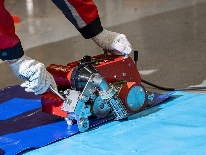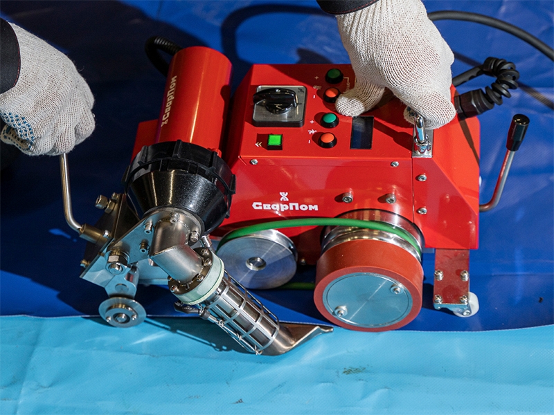 Сварочный автомат горячего воздуха СварПом СП51 20 мм (SvarPom SP51 20 mm) – автоматический сварочный аппарат горячего воздуха для эффективной сварки внахлест горячим воздухом технических ПВХ-тканей и полимерных пленок при производстве всевозможных тентовых и баннерных конструкций (укрывных тентов, автомобильных тентов, павильонов, укрывных пленок для сельского хозяйства и строительства, биотопов, бассейнов, промышленных завес, рекламных баннеров и т.д.).